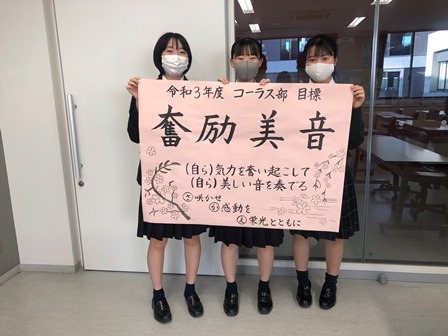 本年度もコーラス部の目標を書きました!3年生3名の力作です。