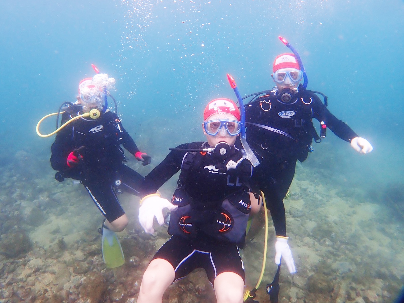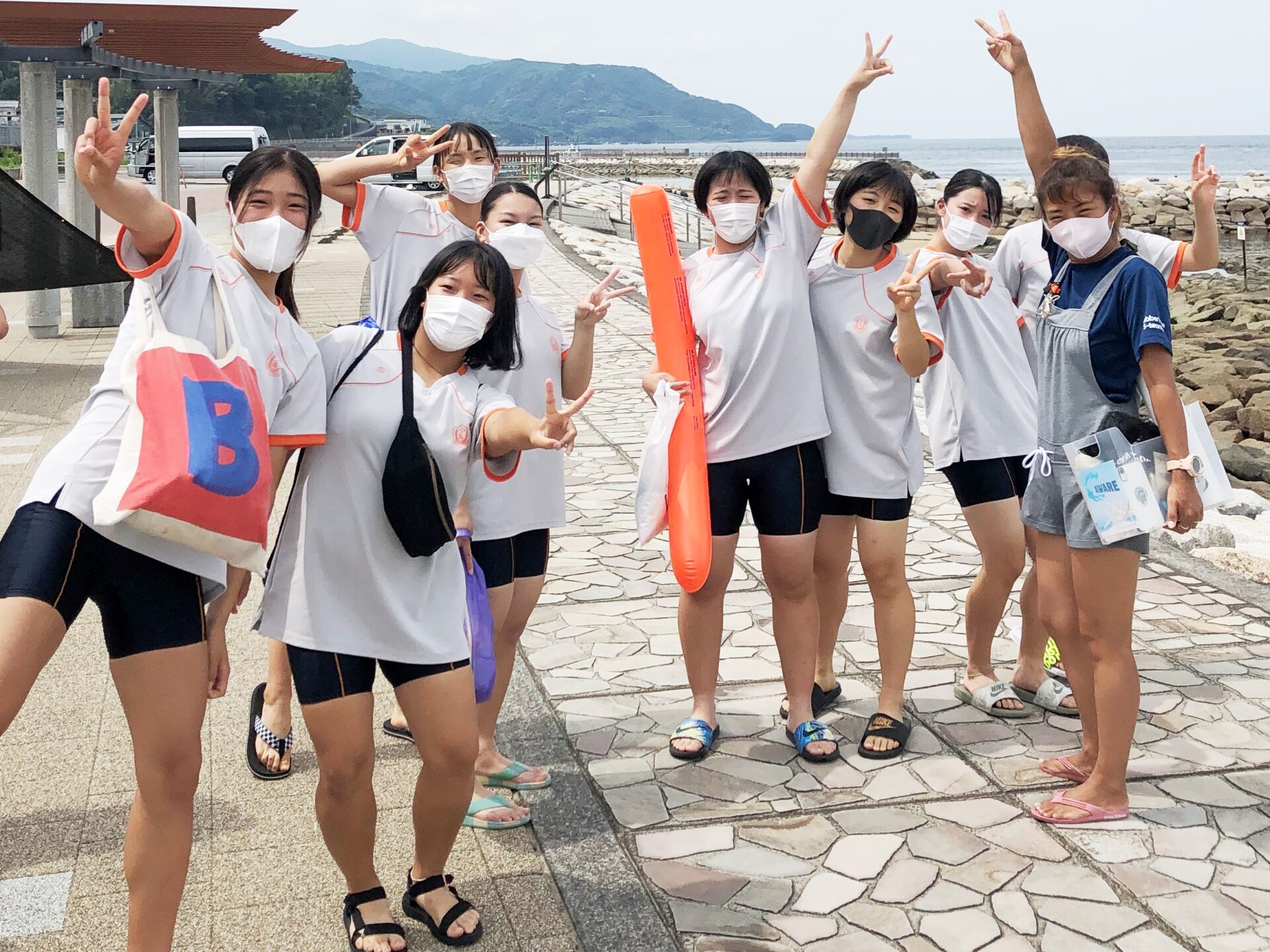 実習中、制約が多い中での実施でしたが、天候にも恵まれたおかげで、事前のプール実習で学んだことをしっかりと活かし、インストラクターの指示に従って予定通り行うことがきました。