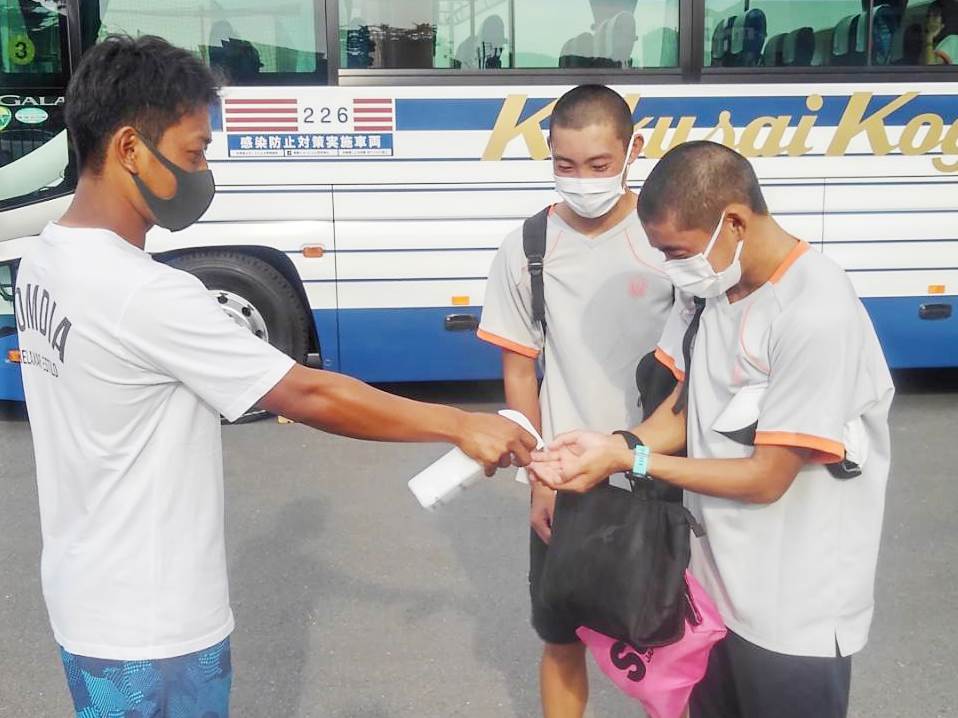 実習当日はコロナ感染予防対策として、バスの乗車前には検温と手指の消毒、乗車中はマスクの着用を厳守しました。現地では、実習時以外はマスクの着用を徹底し、食事の際は会話を禁止するなど、ディスタンスを常に意識しながら行動をしました。