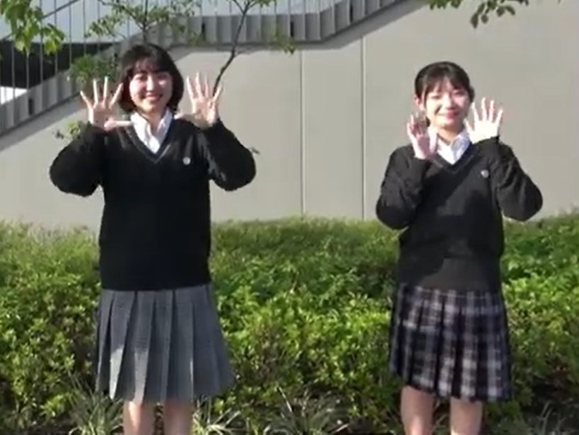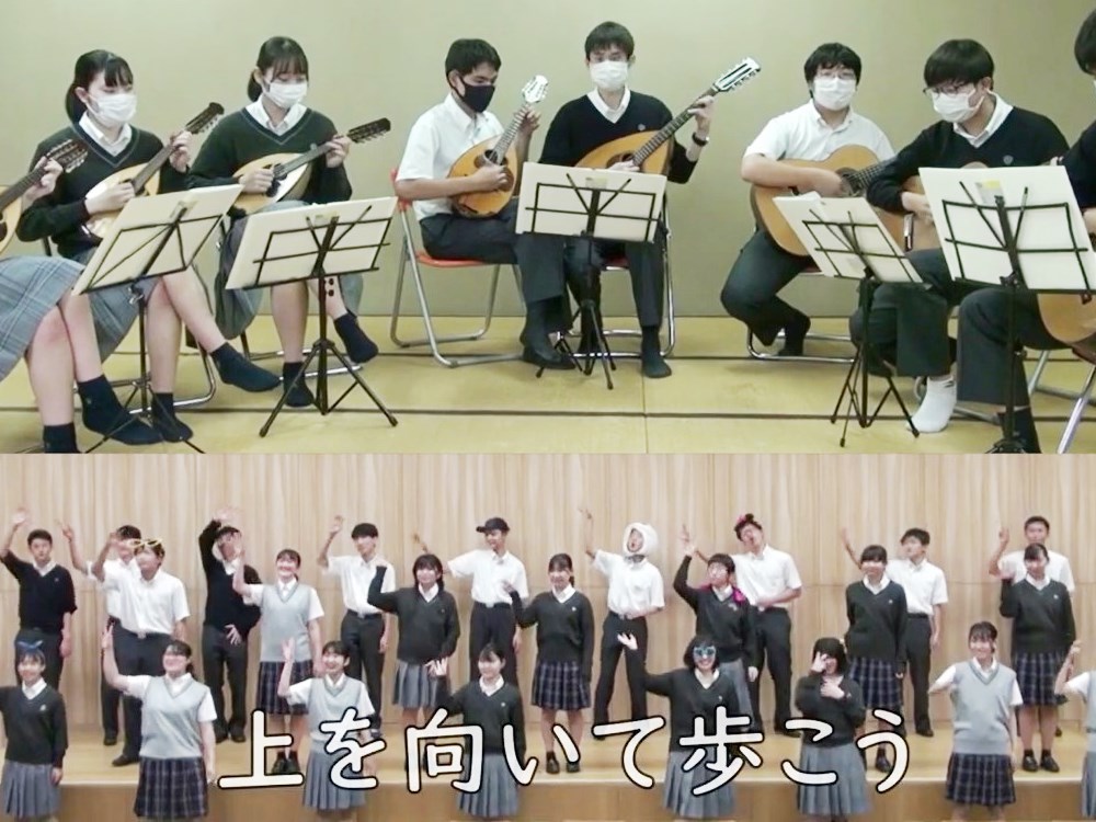 1曲目の演奏は『上を向いて歩こう』。2年生の有志による演奏に加え、1年生は手話に挑戦しました。2曲目の演奏は『海の見える町 ~魔女の宅急便 挿入歌~』。部員が好きな曲であり、ビデオメッセージを送り届けるという意味もこめて、今回この曲を選びました。