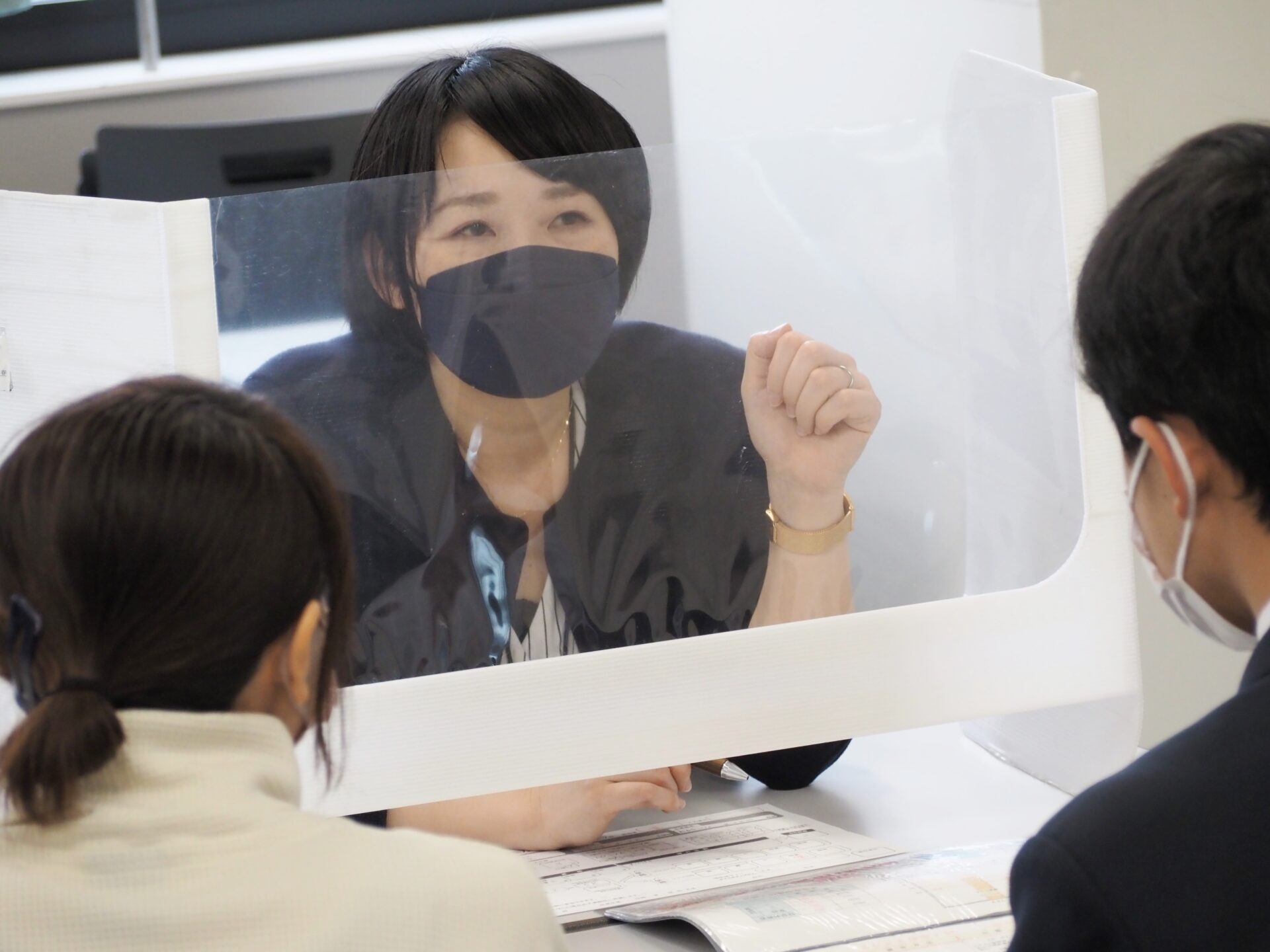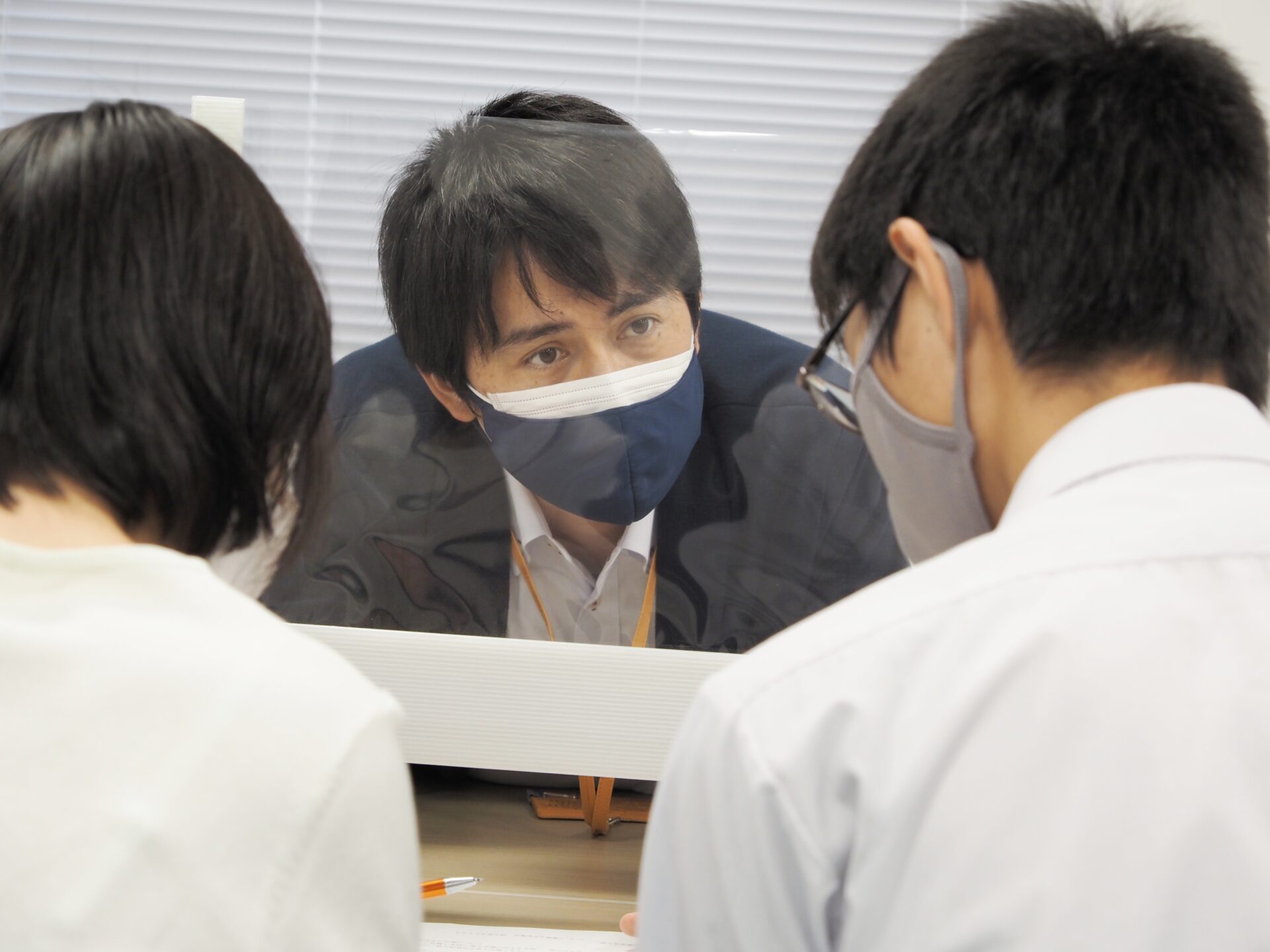 入試相談会では、本校の特色や取り組み・各科コースの説明・入試概要 について説明をしました。その後、いくつかのグループに分かれて施設見学を行ってから、個別相談にご案内しました。