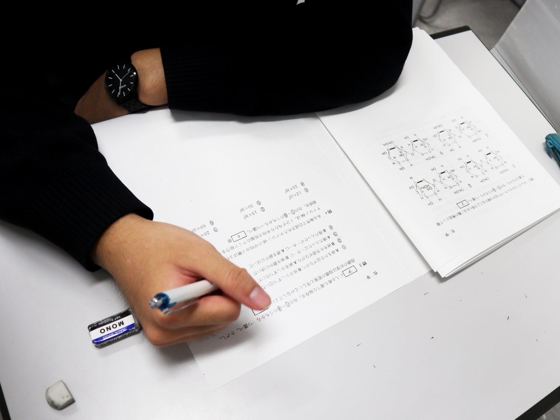 3学年対象に、化学演習を毎週火曜日の放課後に実施しています。11月2日(火)の化学演習では「メタンの燃焼」などの演習問題を行い、教員が詳しく丁寧に解説しました。
