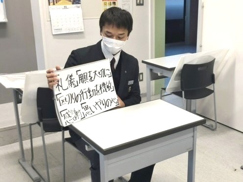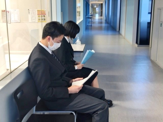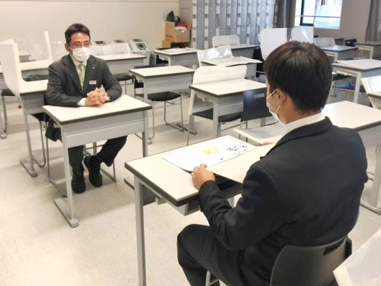 総合型選抜・学校推薦型選抜入試対策として、2学期より面接練習を行っています。生徒たちは、1学期末に入退室や応答の仕方などの基本的な事項を、動画を視聴して学習しました。9月の休校期間中はオンラインで面接練習を行っていましたが、通常登校が再開してからは対面式の練習を実施しています。