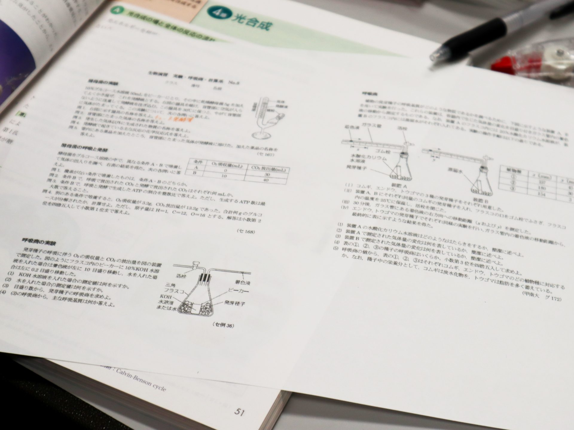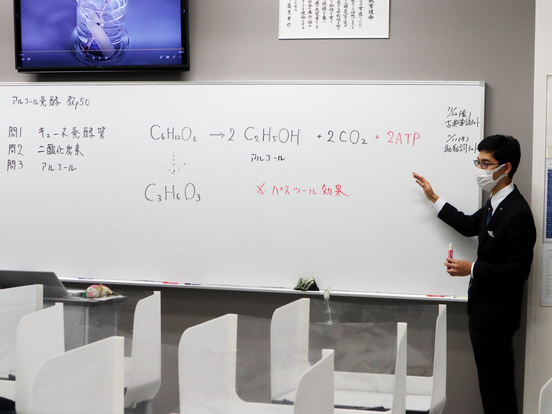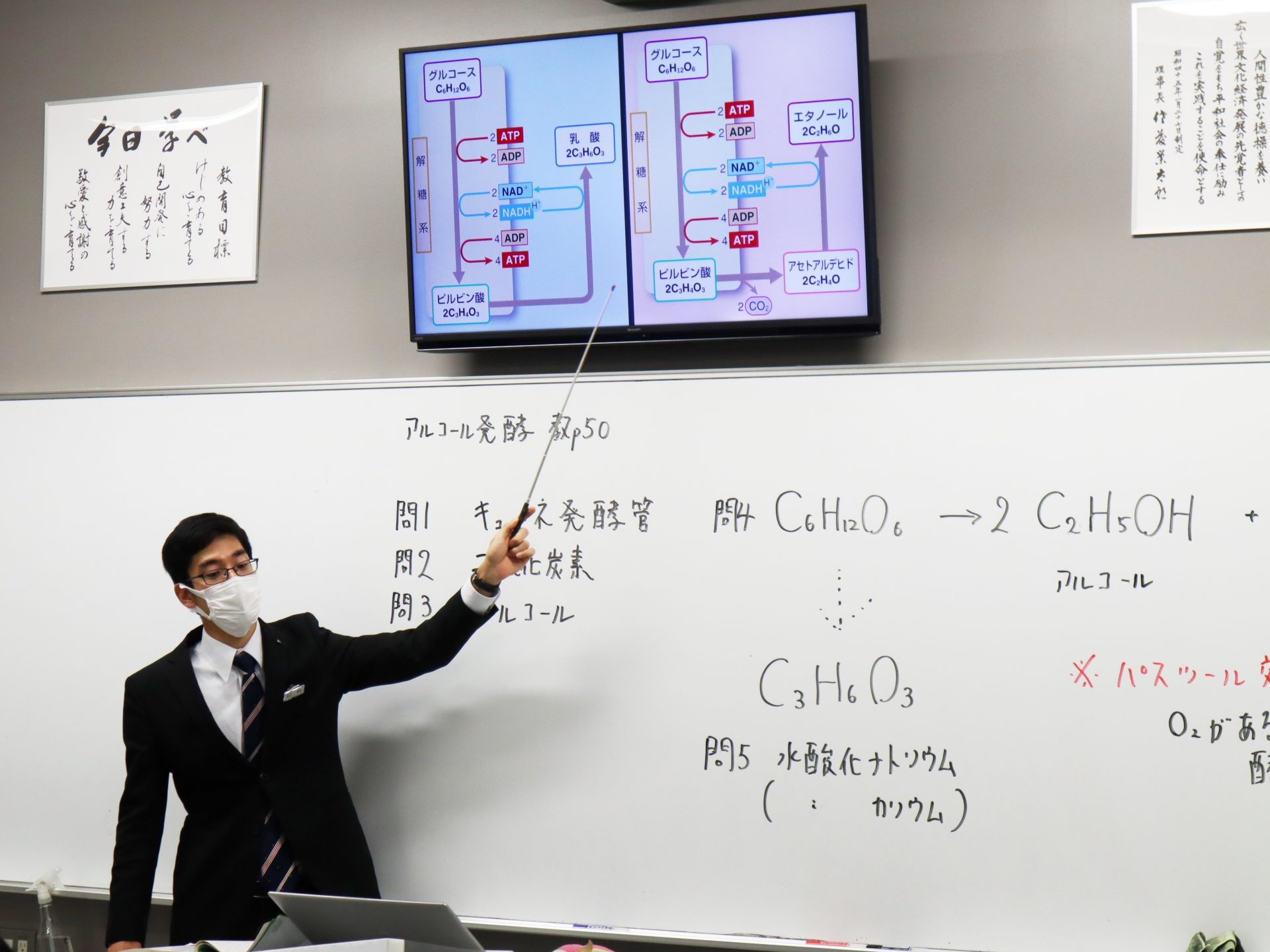 2学年対象に、生物演習を毎週火曜日の放課後に実施しています。11月9日(火)の生物演習では「代謝における呼吸と発酵」を学びました。