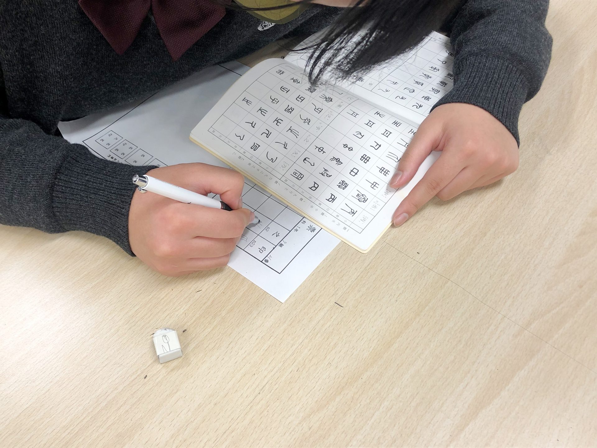 1・2年生は古典作品の臨書だけでなく、篆刻や硬筆にも幅広く取り組んでいます。また、3年生は受験勉強と両立しながら、6名で卒業制作を少しずつ進めています。部員たちの新作の仕上がりが、今からとても楽しみです。