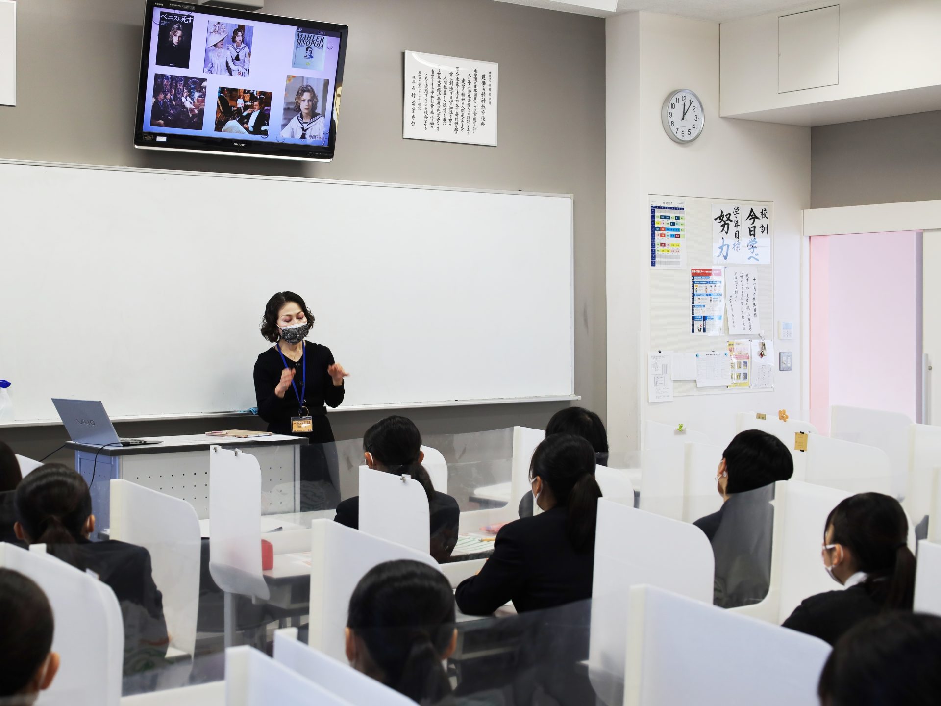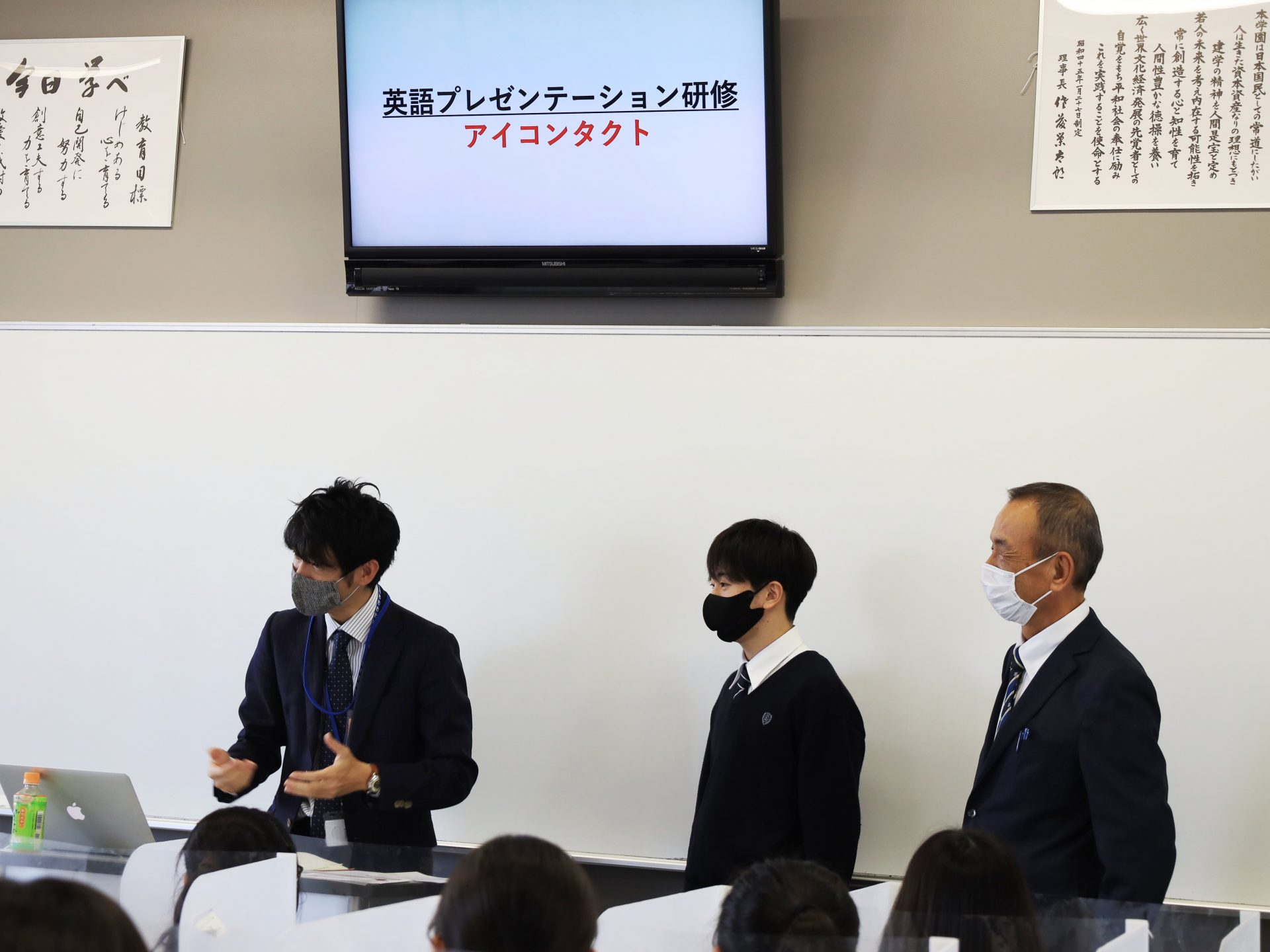 11月19日(金)、普通科1学年対象にキャリア教育を、感染症拡大防止対策を十分に講じて実施しました。前半の全体会は「働く理由」を考えるプログラムを、教室のテレビ放送を通じて行いました。