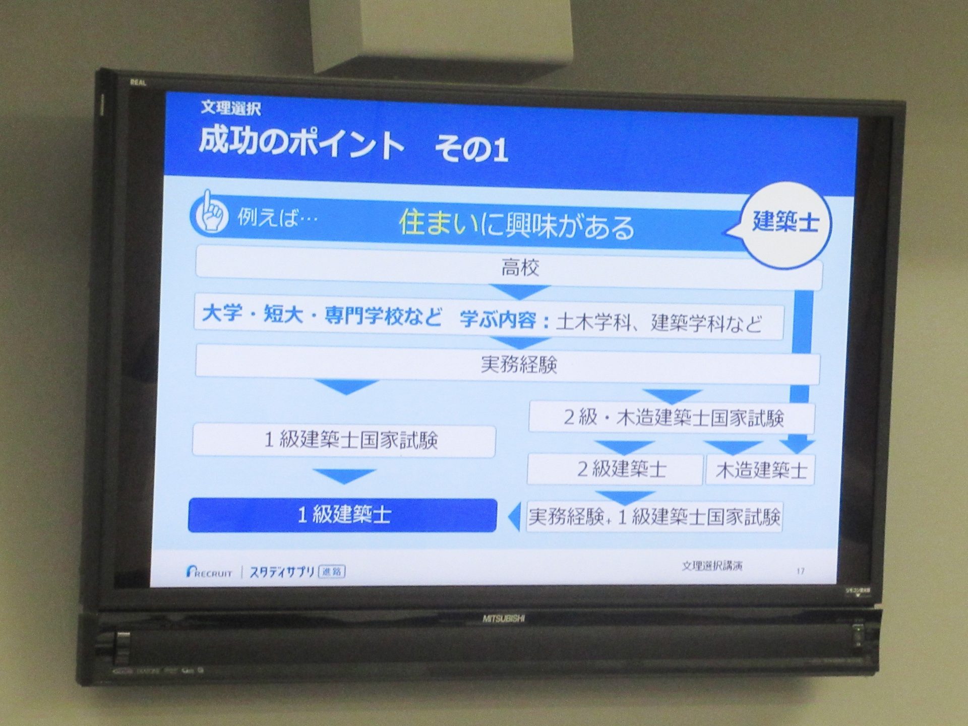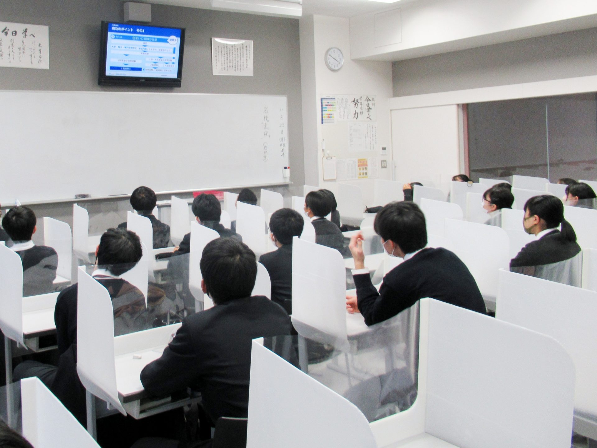 11月22日(月) 放課後、リクルートより千葉博氏を講師にお招きし、教室のテレビ放映を通じて、大学入試の現状と進路選択に向けての心がけについて、講演していただきました。