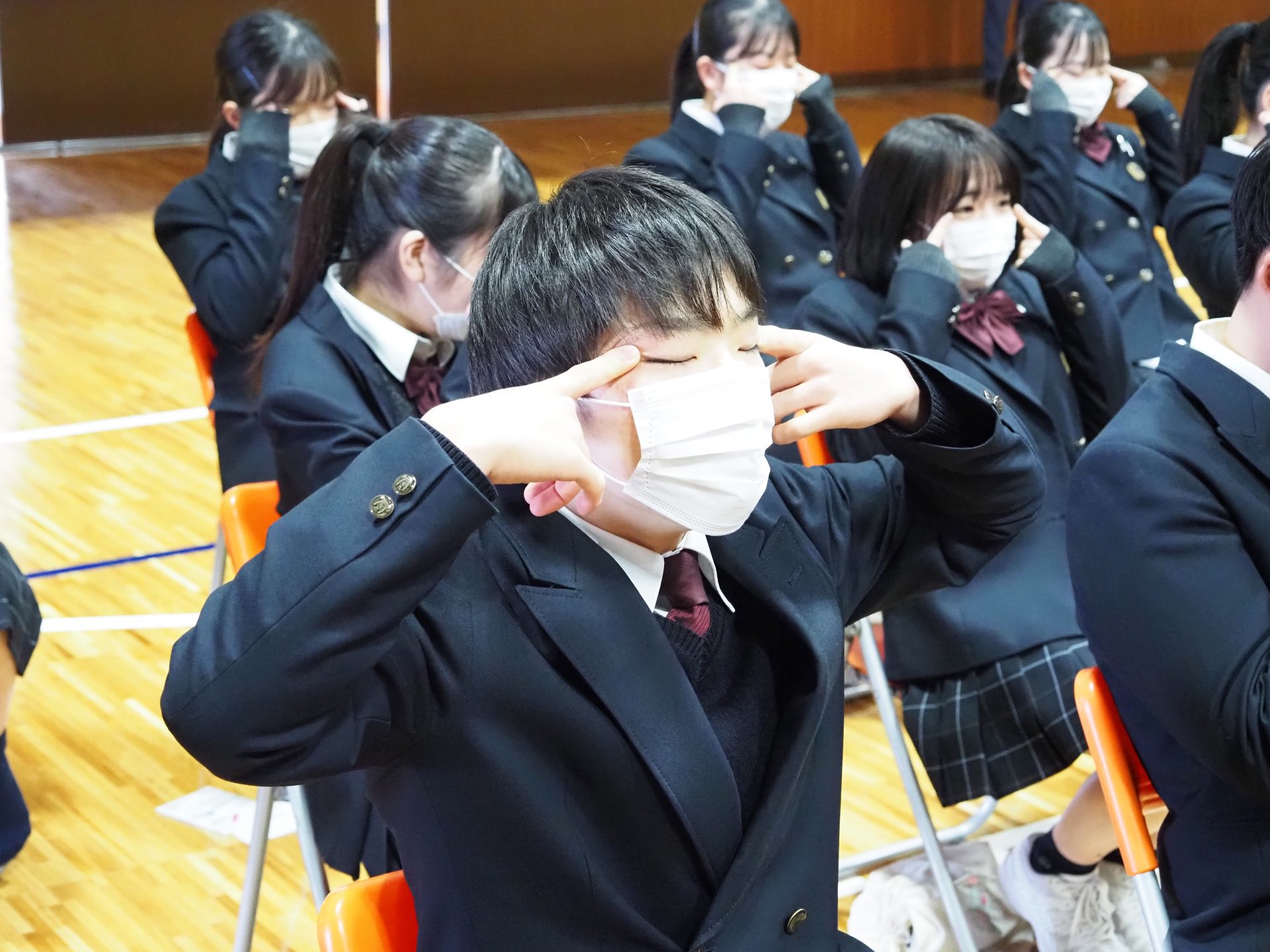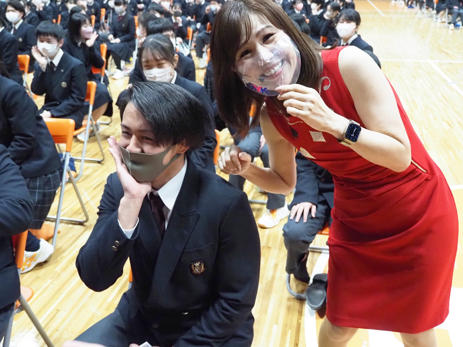 はじめは緊張気味な生徒たちでしたが、表情トレーニングが進むにつれて積極的になり、講演半ばにはとても良い表情で立ち振る舞いができるようになりました。