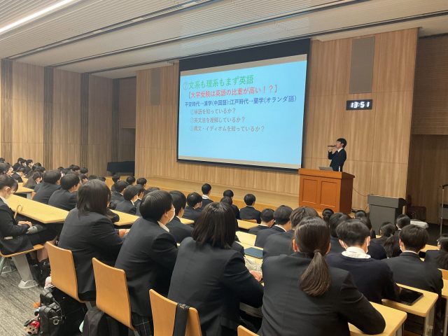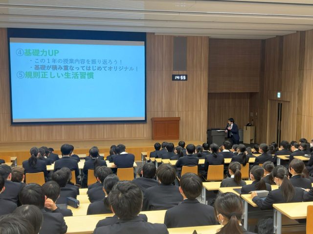 生徒たちは皆真剣に耳を傾け、パワーポイントの画面を熱心に撮る姿も見られました。2学年に進級後、生徒たちの躍進に期待しています。