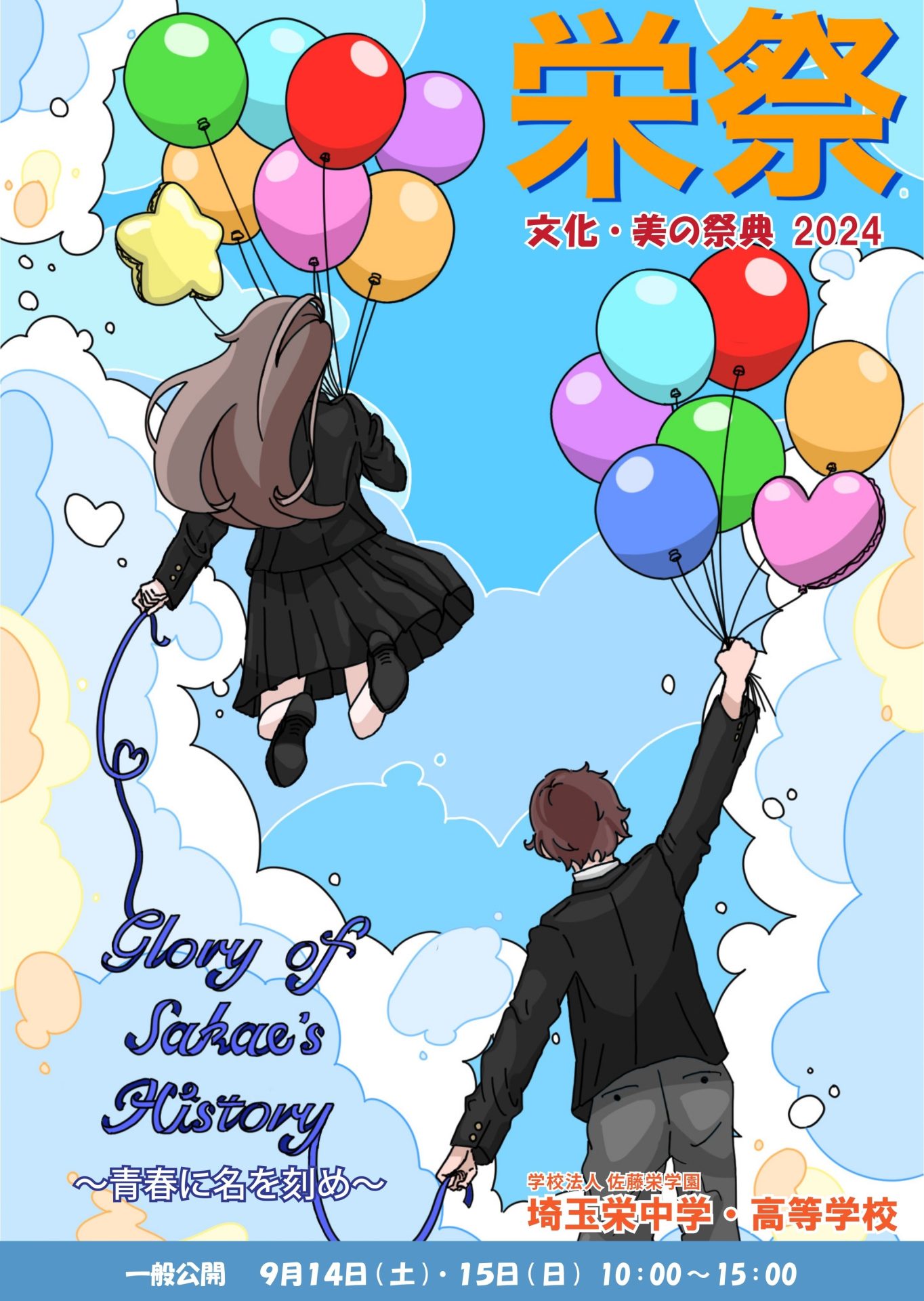 9月14日(土)・15日(日) 10:00~15:00に開催する 文化祭 (文化・美の祭典)のWebパンフレットが完成いたしました。 本年度は『Glory of Sakae’s History ~青春に名を刻め~』のテーマのもと、両日とも一般公開で開催いたします。事前予約や入場制限はございません。多くの皆様のご来校を心よりお待ちしております。