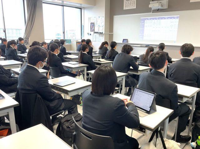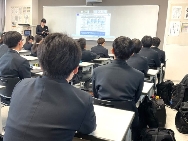2月3日(月) 1時限目、普通科新3学年生徒を対象にした進学講演会を、ベネッセコーポレーションの新岡侑也氏を講師に迎え、大教室及びZOOMによる中継で実施しました。講演会では、この時期が大学受験に向けていかに重要かを説明し、今後の志望校決定や模試の活用方法、学習の仕方を生徒たちに考えさせる内容でした。