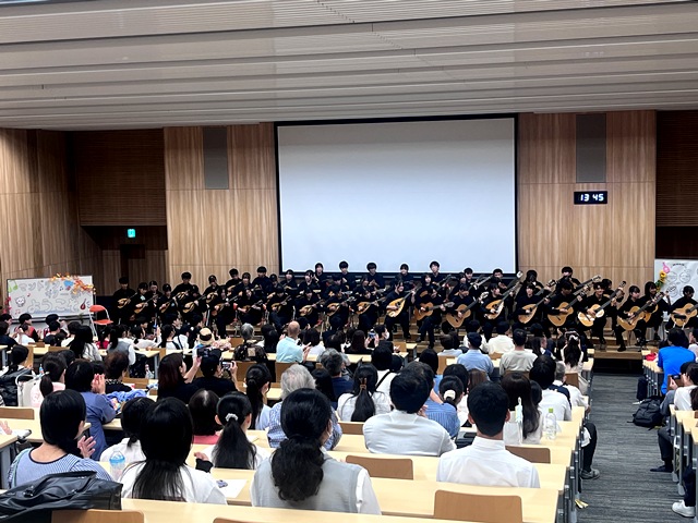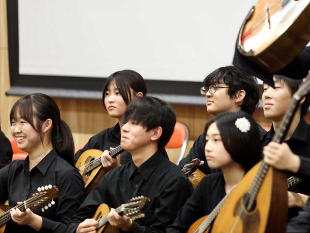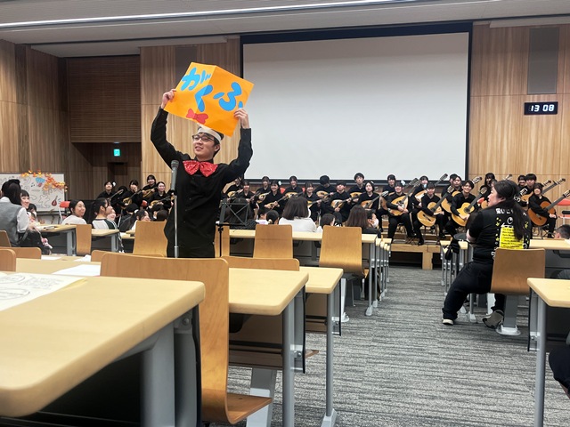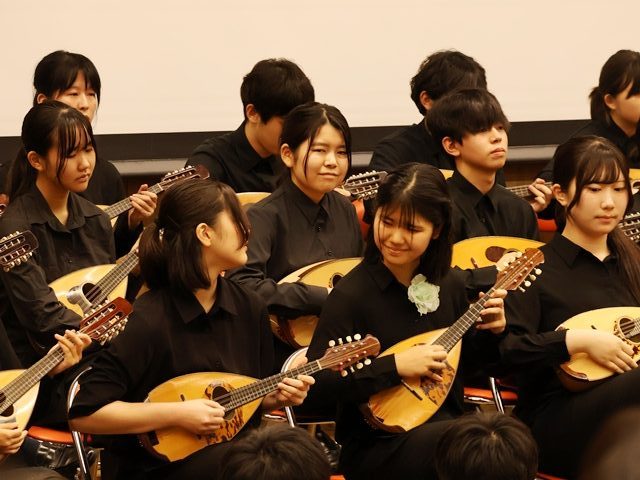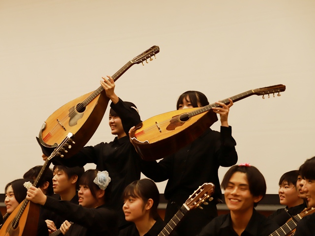 9月13日(土)・14日(日)、本校文化祭が開催され、マンドリン・ギター部は大教室にてコンサートを行いました。名探偵コナンのメインテーマに合わせて劇を交えたパート紹介を行ったほか、3年生のみでこれまでの思い出を込めて『365日の紙飛行機』を演奏するなど、笑顔と涙あふれる演奏会となりました。