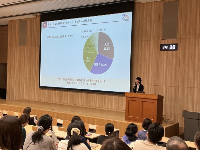 保護者の方には、各教科の学習が将来の進路・職業にどのように結びつくのかを具体的なデータとともに解説してくださいました。そして、文系・理系の選択によって受験可能な大学や学部の幅が大きく変わることを明確に示しました。