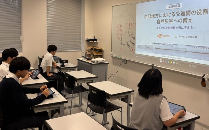 9月29日(月)、埼玉栄高校キャリアイノベーション同好会は、JR東海さまと株式会社ARROWSさまが制作した「SENSEI よのなか学」の教材を用いた特別授業を受けました。テーマは「中部地方における交通網の役割と自然災害への備え」です。生徒たちは、日々当たり前のように利用している鉄道や道路が、私たちの暮らしや産業にどれほど大きな影響を与えているのか、そして自然災害のリスクにどう立ち向かうのかを考える時間になりました。