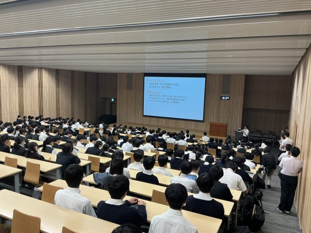 10月9日(木)、共通テスト出願者を対象に、共通テスト100日前集会を行いました。進路指導科より、今後の具体的な学習計画の立て方や心構えについて説明がありました。