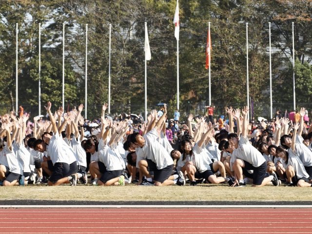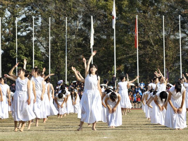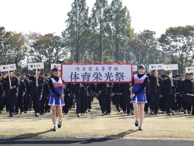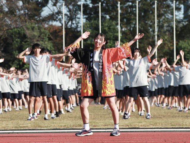 10月30日(木)、体育祭(体育栄光祭)を鴻巣市立陸上競技場にて「咲かせよう オレンジの華に 栄の光を」のテーマのもと実施しました。当日は恵まれた天候の中、約850名の保護者を迎えて開催することができました。