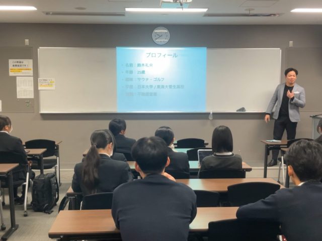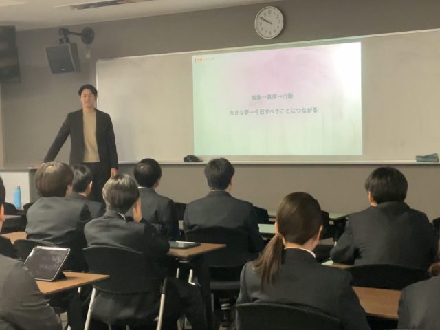 12月6日(土)、キャリアイノベーション同好会では、株式会社マイナビ・TUNAGARI代表と大手保険業界よりお二人の講師を招き、「キャリア」をテーマとした特別講演会を実施して頂きました。今回の講演は、生徒が自らの将来像を考え、主体的に行動するきっかけを得ることを目的として開催されたものです。