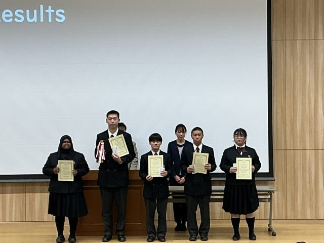 講評では、審査員のトレント先生より「家族や友だち、世界問題など幅広いテーマが扱われ、内容も非常に高度なものがあった。多くの人の前で話すこと簡単ではありませんが、どの生徒も堂々と発表しており、大変感銘を受けた」と今回のコンテストを振り返りました。
