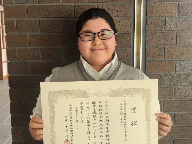 昨年に引き続き、立教新座高等学校を会場として大会が開催されました。1年生の石鍋君はB級予選リーグを全勝で突破し、決勝トーナメントでも全勝してA級へ昇格しました。また、女子の部では3年生の青木さんが第3位に入賞し、12月21日(日)に開催される関東大会への出場を決めました。