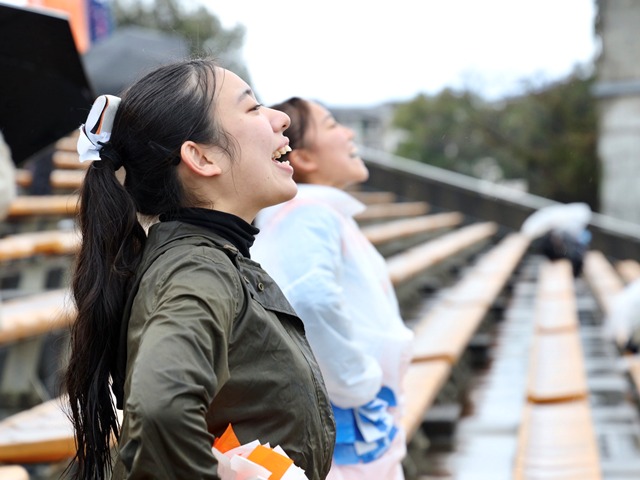極寒の中、最後まで諦めずに走り抜く選手たちの姿に、深い感動を覚えました。今後も、選手の背中を力強く後押しできるような応援ができるよう、部員一同、精一杯取り組んでいきます。