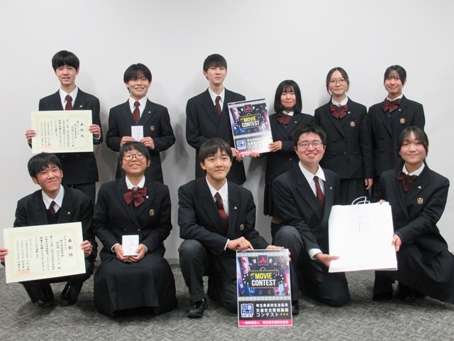 第1回埼玉県高校生自転車交通安全啓発動画コンテストが、埼玉県察・埼玉県教育委員会・埼玉県の共同主催により実施されました。本校放送部が制作した動画が、グランプリおよび準グランプリを受賞し、12月23日(火)に本校にて表彰式が行われました。「自転車の交通ルールを守ること」をテーマとした作品がグランプリ、「自転車のながら運転」をテーマとした作品が準グランプリを受賞しました。