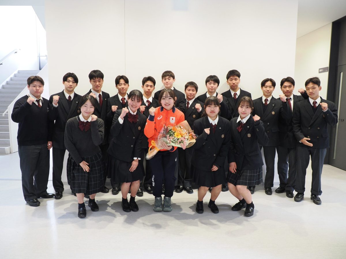 3月2日(月)、ミラノ・コルティナ2026冬季オリンピックのスピードスケート・ショートトラック女子3000mリレーにおいて6位入賞を果たした本校卒業生・金井莉佳選手が、結果報告のため来校しました。当日は、本校への表敬訪問をはじめ、中学高校の生徒会より花束が贈呈され、元担任との再会のひとときも設けられました。