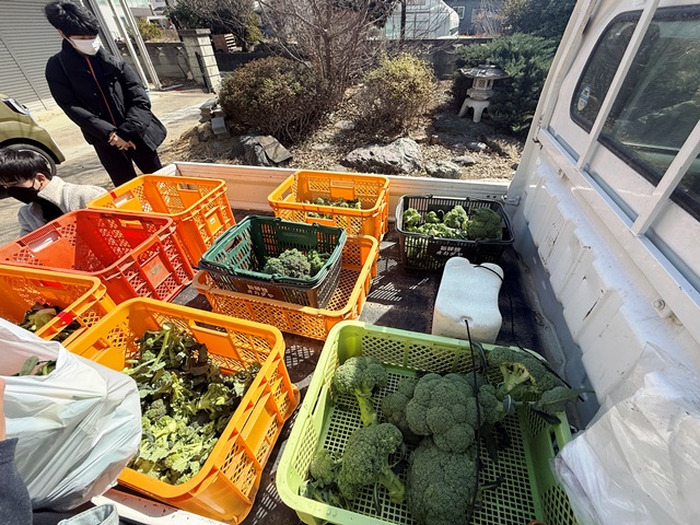 2月28日(土)、馬宮米部会の皆さんとの農業体験を実施しました。今年度はこれが最後の活動となります。残っていたブロッコリーとアレッタの収穫、ビニールハウス内の整備を行いました。ブロッコリーの畑は、これから稲作のための田んぼへと変わります。
