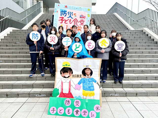 2月11日(水)、本校にて地域防災イベント「防災子ども食堂 in SAKAE」を実施し、近隣にお住まいの親子約160名にご参加いただきました。総合探究部が運営する「西大宮子ども食堂SAKAE」が加盟している、さいたま市子ども食堂ネットワークでは、地域防災への取り組みに力を入れています。今回のイベントは、独自の防災教育プログラム「防災ジャパンダプロジェクト」を展開している損害保険ジャパン株式会社の全面協力のもと、西区の子ども食堂が中心となって開催しました。