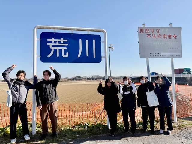 2月21日(土)、川島町と桶川市の間を流れる荒川に架かる太郎右衛門橋の下に広がる自然再生地において、湿地に増えたヤナギ類の伐採を行いました。この活動は、荒川太郎右衛門地区自然再生協議会が定期的に主催しているもので、一般ボランティアの募集に応募し、今回の参加が実現しました。総合探究部では「学生主体のまちづくり」をテーマに、地域交流など人と関わる活動に加え、上尾丸山公園の湿地保護など、自然との共生をテーマにした活動にも取り組んでいます。