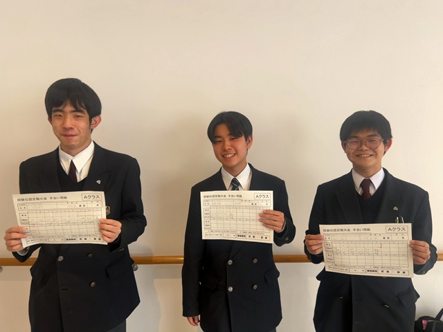 今年度は、2年生の青砥君・山口君、1年生の石鍋君の3名がAランクに参加しました。全員が見事に4連勝を果たし、二段取得という結果を収めました。昨年度に続き、新年度に向けて幸先の良いスタートを切ることができました。