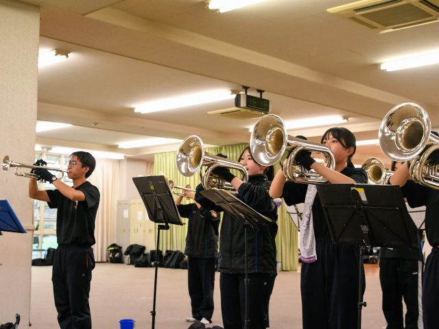 記事では、練習の様子の取材をもとに、日頃の練習内容や指導方法、部活動の雰囲気などが紹介されています。また、マーチングバンドで得た学びを今後どのように生かしていくかについて、インタビュー形式で答えています。さらに、メンバー同士の信頼関係や、学校・保護者との協力体制など、技術面にとどまらない本校の取り組みも取り上げられています。
