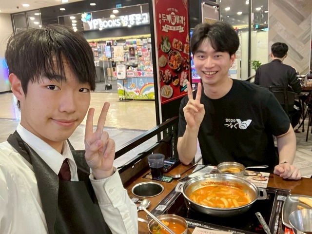 私は今回で2回目の韓国研修に参加しました。韓国に行く前に、前回お世話になったホストファミリーのチャンさんに連絡をしたところ、「また泊まっていいよ」と返事をいただき、再び同じ家族のもとに滞在できることになりました。連絡をもらったときは、思わず飛び上がるほど嬉しかったです。実際に韓国に到着し再会した瞬間、前回の思い出が一気によみがえり、胸がいっぱいになりました。韓国語での会話はまだ難しい部分もありましたが、前回よりも確実に成長していることを実感でき、言葉が伝わる喜びを改めて感じました。いつも温かく迎え入れ、たくさん支えてくださったホストファミリーには感謝の気持ちでいっぱいです。この経験や人との関わりは、これからもずっと心に残る大切な宝物です。(高校2年生・副部長 澁谷さん)