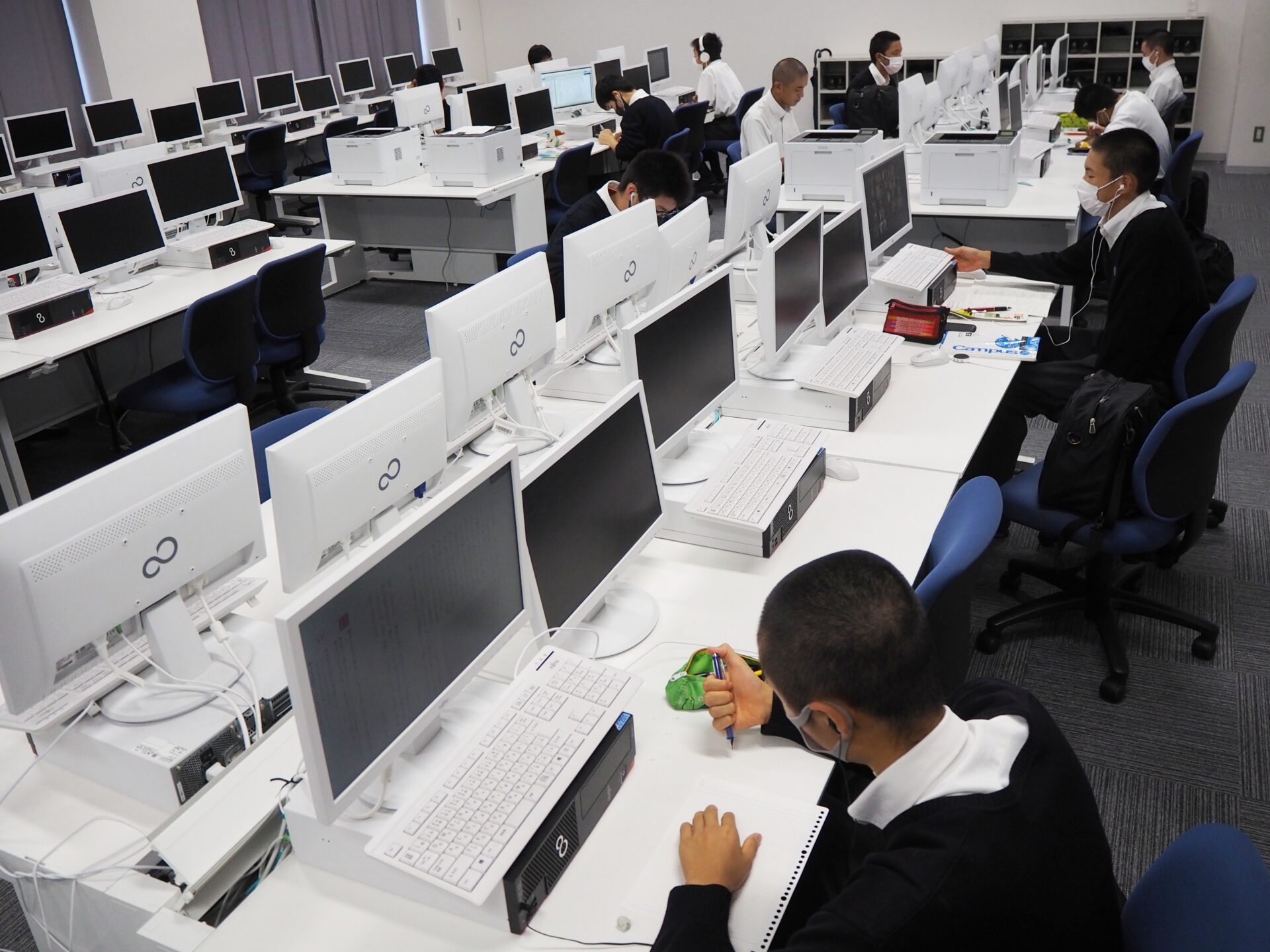 また、寮生などの対応として、校内の情報教室のパソコンを活用し、ディスタンスを確保しながら、オンライン授業を行っています。