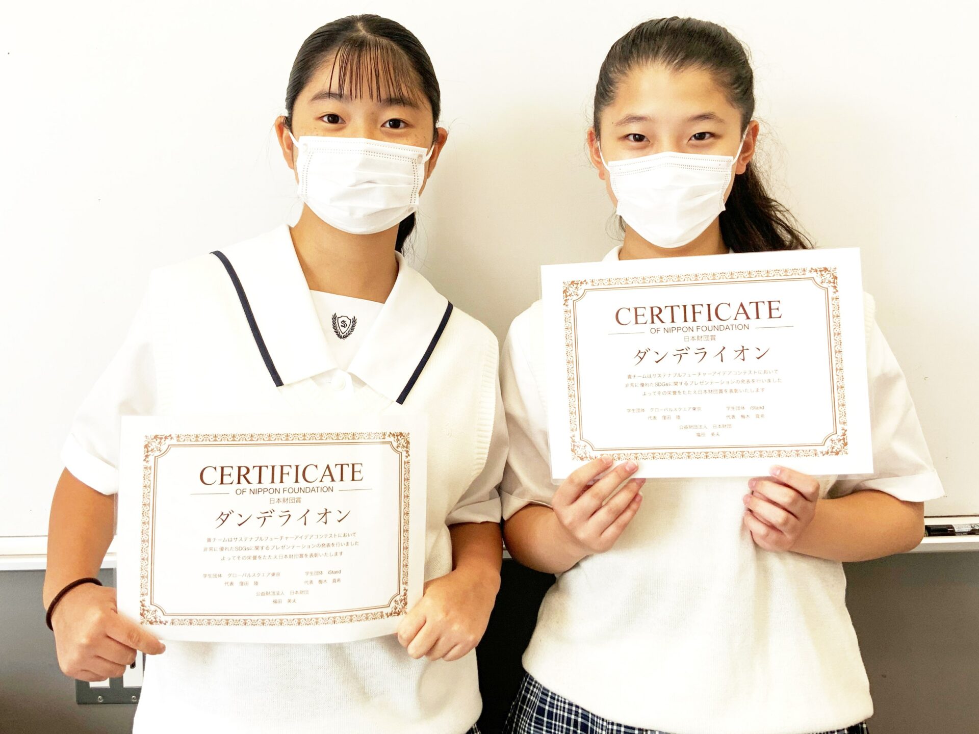 中学生・高校生合わせて50組以上が出場しましたが、本校からは2チームが上位に入賞しました。高校生のチームに劣ることなく、中学生では最も上位の日本財団賞をいただくこともできました。