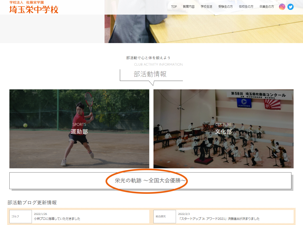 また、本校ホームページ【部活動 ― 栄光の軌跡~全国大会優勝~】から 過去の全国大会優勝部 >>> がご覧いただけます。