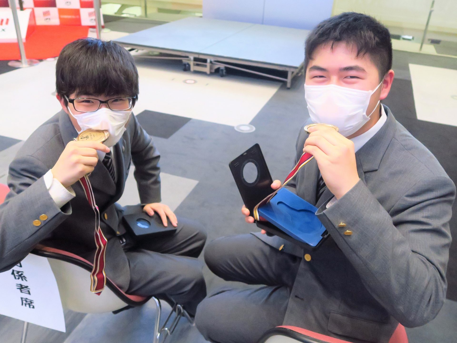 決勝大会当日の様子はYouTubeで配信されています。なお、プレゼンテーションをする部員の姿は、尾関君 2:09:00~2:20:22、松井君 2:20:24~2:32:40 で視聴できます。どうぞご覧ください。