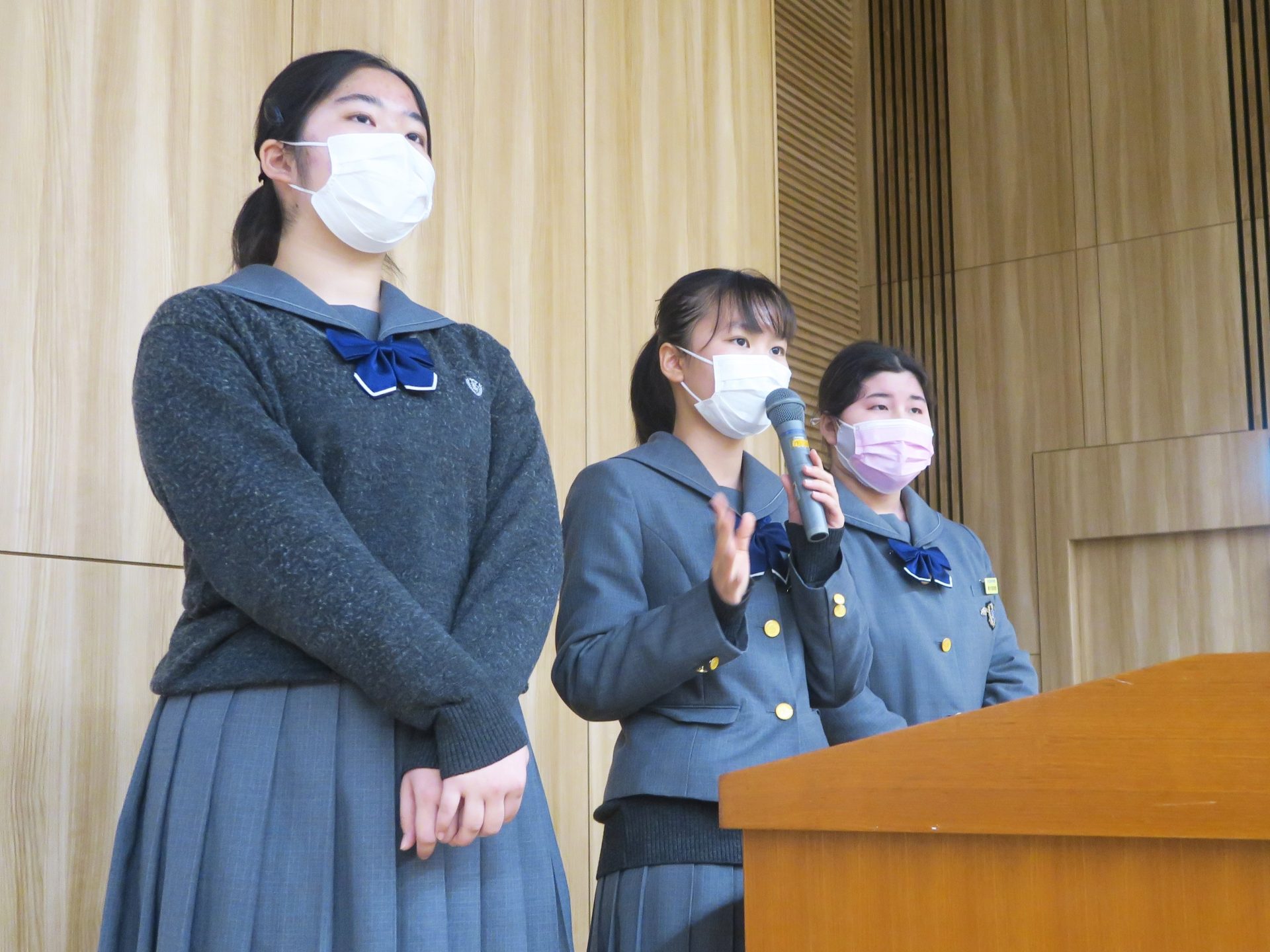 全ての発表が終わり、2学年の生徒たちによる投票を行い順位が決定しました。1位は「アフガニスタンのタリバン政権下で起こっている人権侵害について」プレゼンをした坂本さん、相田さん、青木さん。