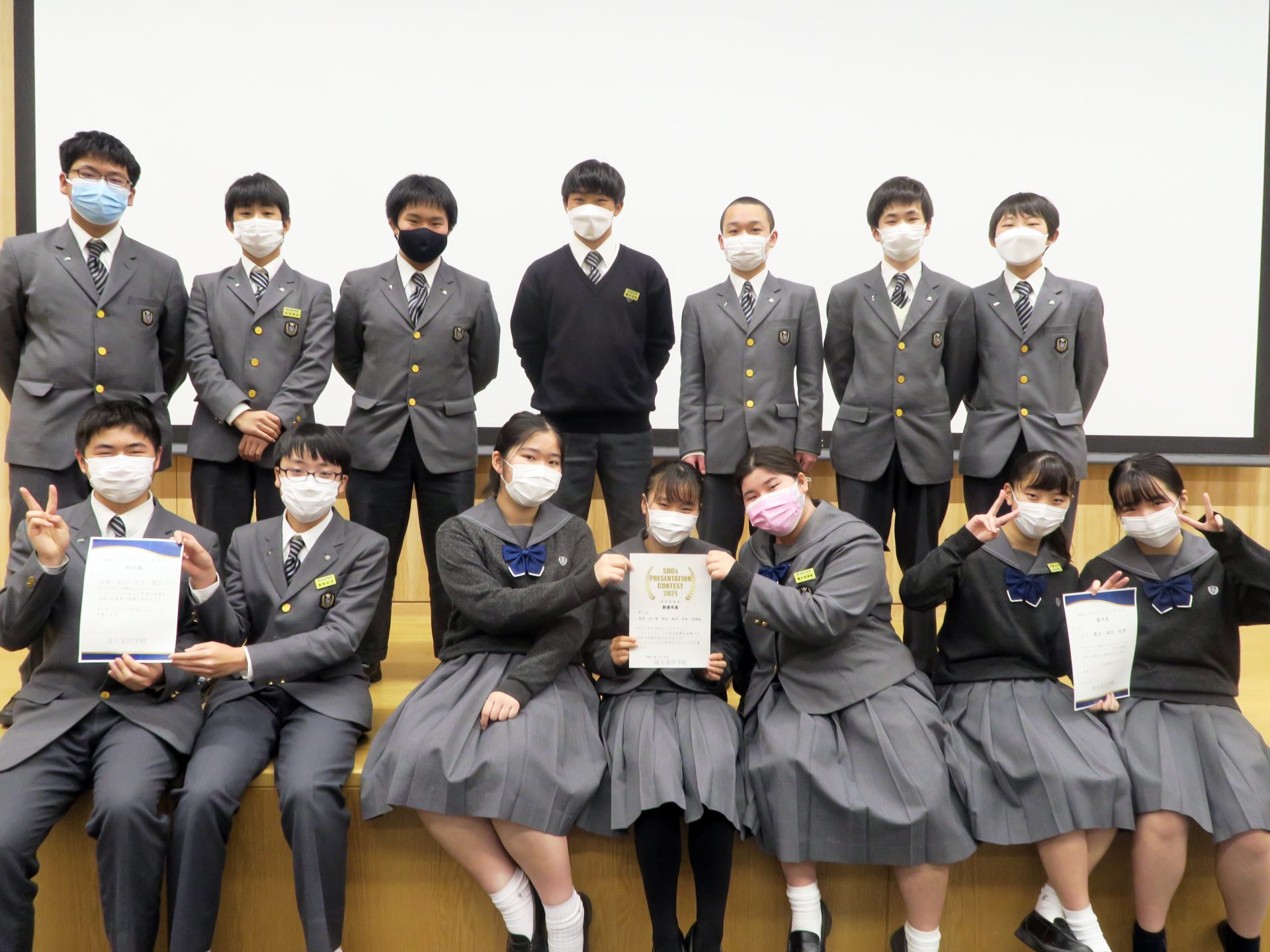 プレゼンテーションコンテストも、今回で2回目となり、1学年次に行った時よりもレベルが格段に上がりました。今後は自分たちで課題解決に向けてアイディアを出し合い、実践できるような探究プログラムに取り組んでいこうと思います。