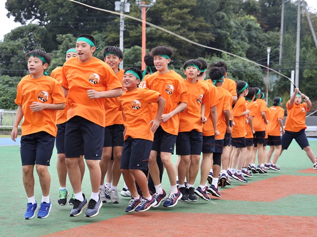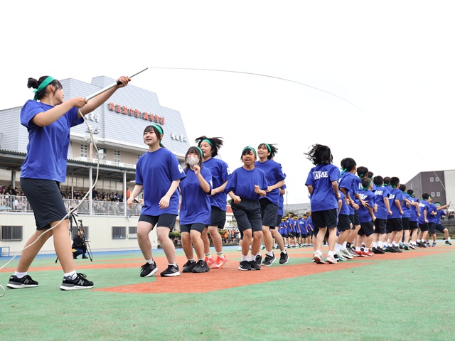 続く「みんなでジャンプ」では、長縄跳びの回数を競う中で、失敗しても「もう1回」と声をかけ合い、クラス全員の団結力が試される場面も多く見られました。全員の呼吸を合わせる難しさを感じながらも最後の一秒まであきらめない姿勢に、胸が熱くなりました。