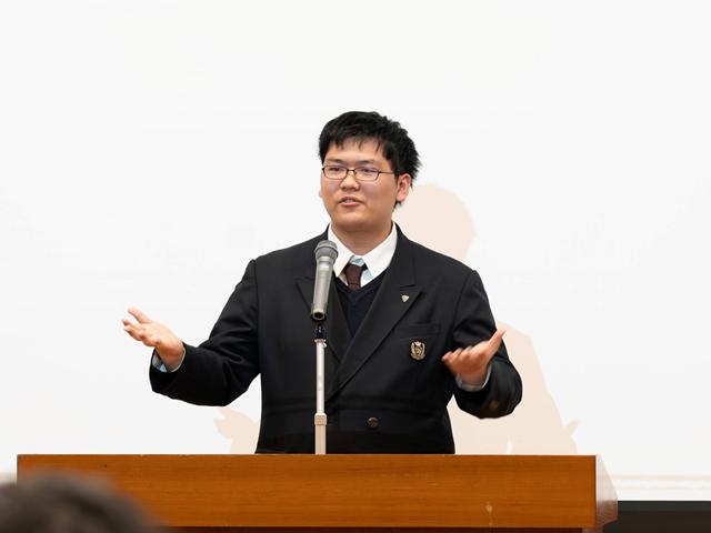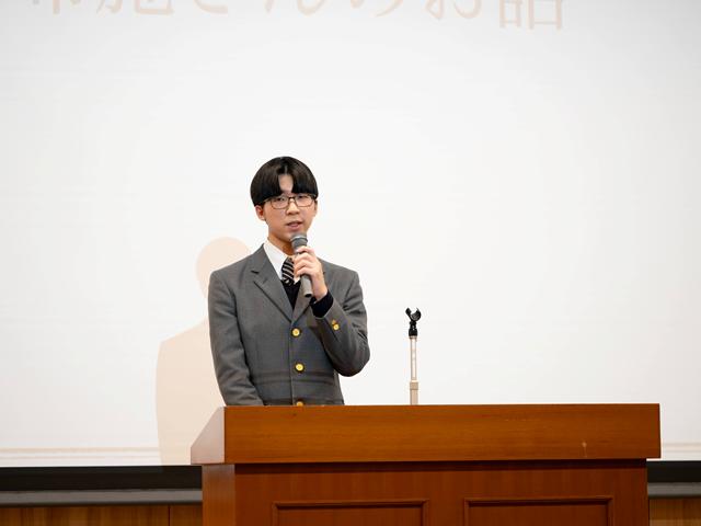 埼玉栄中学校出身の高校3年生5名も登壇し、中高6年間の埼玉栄での学業や部活動への取り組みについて話をしてくれました。
