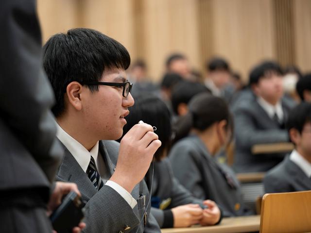 生徒たちは、登壇した代表生徒9名の話に真剣に耳を傾け、積極的に質問をしていました。この会で学んだことを今後の学校生活に活かし、先輩たちの想いを引き継いで埼玉栄中学校を盛り上げてほしいと思います。また、3年生は高校に進学後、さらに学業や部活動で活躍することを期待しています。