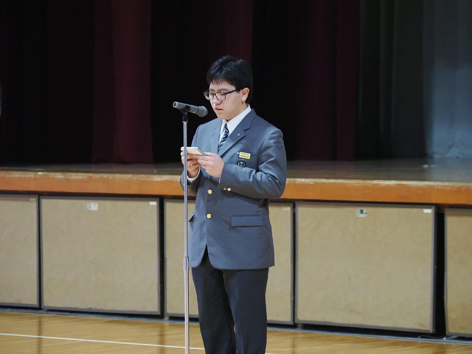 はじめに、15の部活動が日頃の活動内容を紹介する動画を上映しました。続いて、25の部活動がステージに登場し、生出演による紹介を行いました。各部が演奏やパフォーマンス、作品展示などを披露し、会場では新入生から歓声が上がる場面も見られました。部活動紹介の最後には、応援団・吹奏楽部・バトン部・チアリーディング部による応援メドレーが披露され、会場が一体となって大いに盛り上がりました。