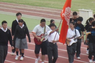 体育祭で部活動行進を行いました。